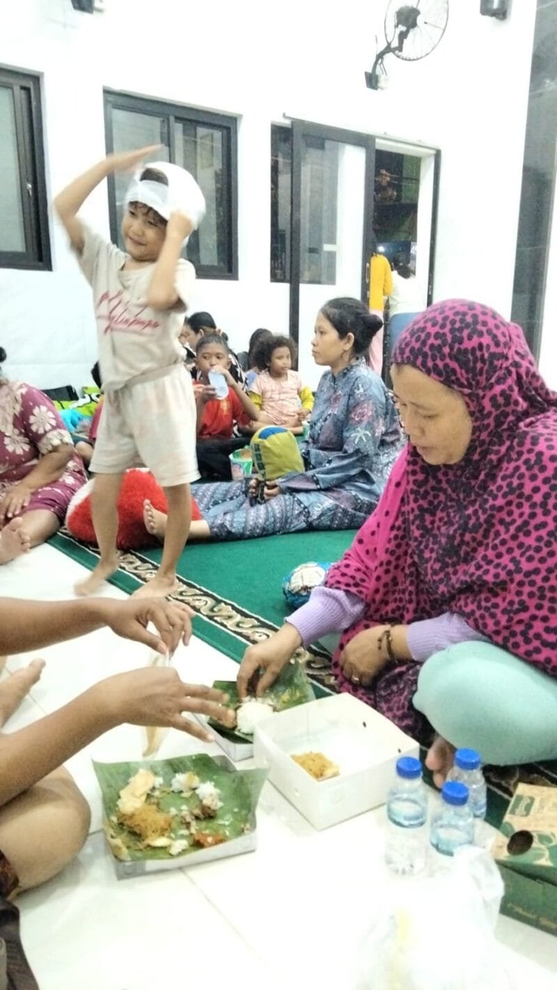 “Banjirnya lumayan tinggi bang, sepaha orang dewasa, makanya banyak warga yang mengungsi cari tempat aman, kebanyakan pada ke mushola.” Ujar Mulyani saat diwawancarai awak media.