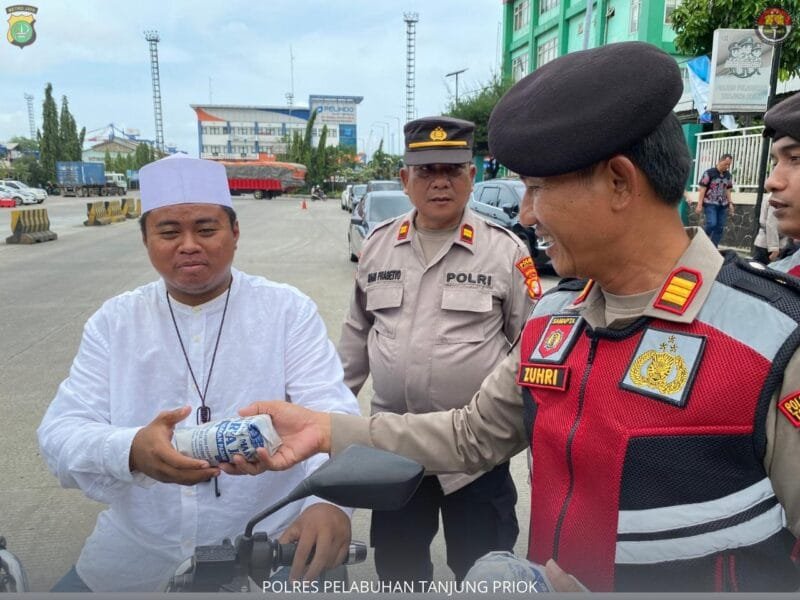 JAKARTA – Polres Pelabuhan Tanjung Priok kembali melaksanakan kegiatan Indahnya Kebersamaan Berbagi Kebaikan dengan membagikan 150 paket makanan siap santap kepada Jamaah Masjid Khodamutaqwa Pos 4 Pelabuhan Tanjung Priok dan sopir, kernet, petugas kebersihan, buruh Pelabuhan Tanjung Priok yang akan memasuki dan keluar Pos 1 Pelabuhan Tanjung Priok, pada hari Jumat tanggal 31Januari 2025.